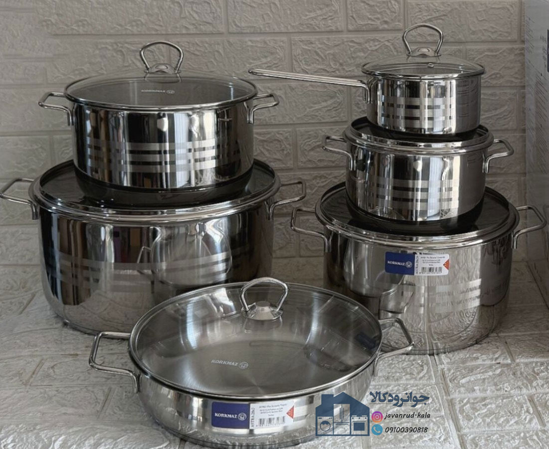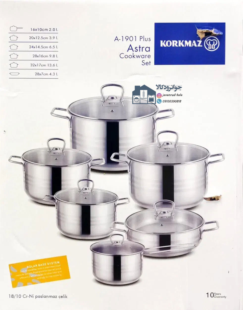 سرویس قابلمه 9 پارچه استیل برند کرکماز مدل آسترا ۱۹۰1 korkmaz Astra